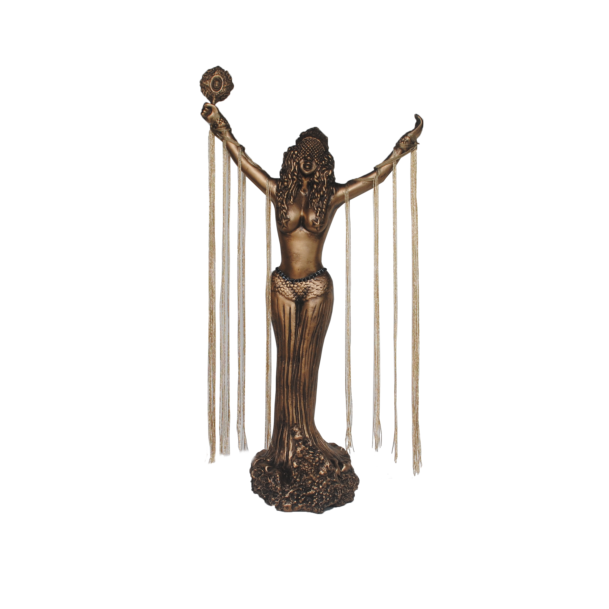 Produzida em resina de alta qualidade, recebe pintura artesanal em tonalidade dourada e aplicação de búzios, destacando os detalhes da representação da Rainha do Mar. O acabamento dourado confere imponência e requinte à peça, tornando-a um elemento central na decoração espiritual.