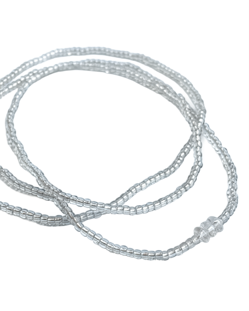 Fio de conta tradicional dedicado a Iemanjá, confeccionado com miçangas cristal, representando proteção, maternidade, equilíbrio e a força das águas nas religiões de Matriz Africana.