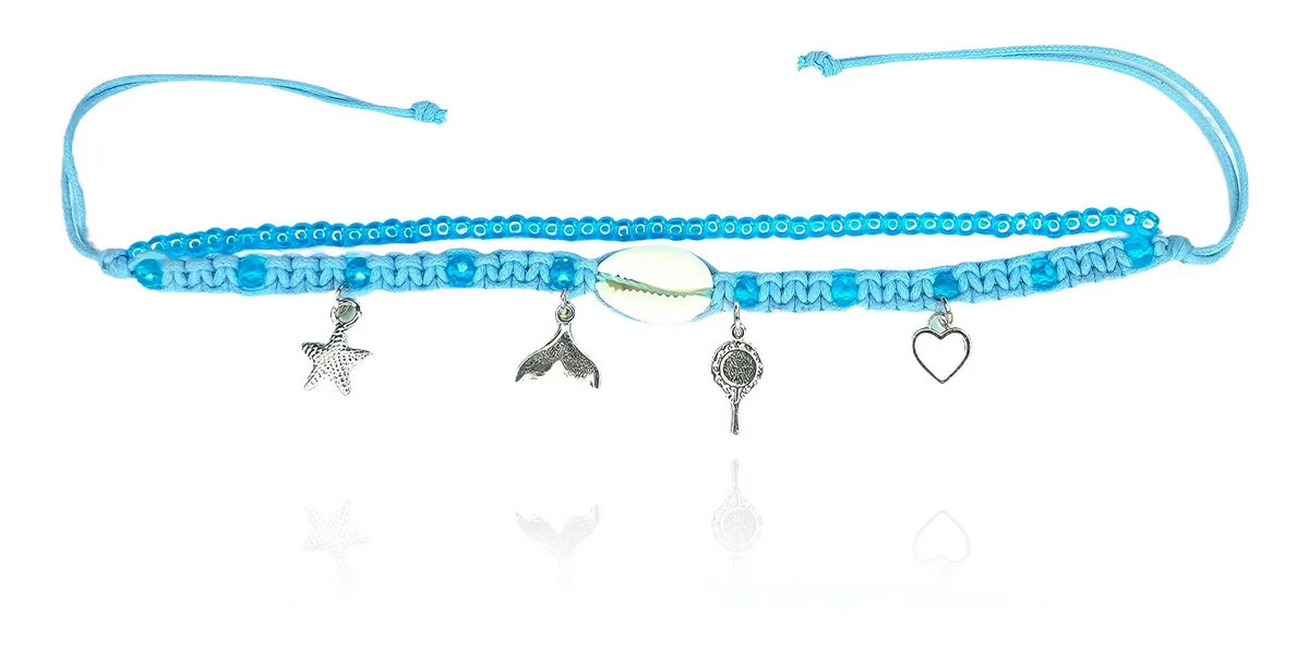 A Tornozeleira de Iemanjá em macramê é um acessório espiritual que simboliza a proteção, a serenidade e a energia das águas da Rainha do Mar, muito reverenciada nas tradições da Umbanda.